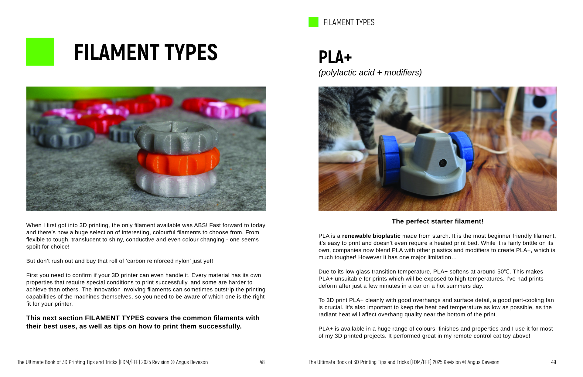 With so many filaments on the market today, it can be difficult figuring out which ones to use. This section covers the most popular filaments, and how to print them successfully.